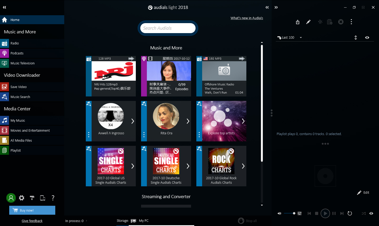 Audials同时还是一款强大的播放器!通过Audials,用户可以方便的播放本地电脑中的音乐及视频收藏。除此之外,Audials的云服务更可以让用户更自由的享受更多娱乐盛宴!用户可通过Audials中的云服务随心所欲的读取、上传、交换您的文件。您只需预先配置您的云服务设备!简单操作,极致体验!