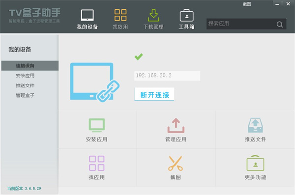 4、打开助手:可以连接TV盒子助手,然后进行批量安装、备份、删除软件,一键root等操作