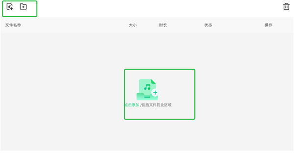 1、进入音频格式转换器软件中,点击添加或拖拽音频文件到该区域中。