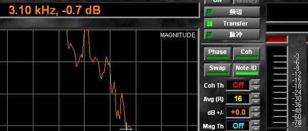 dB + / - ( Y + / - 特别的记录功能 ),在这里提供一个可以将展开出来的图表显示,给予增加或减少观看的电平位置,然后标记下来,无数个记录可以提供同时比对参考,这个有效于 RTA 及 Transfer。