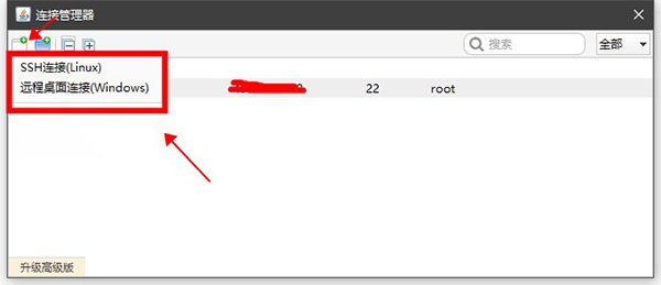 4、点击加号图标,然后选择ssh连接