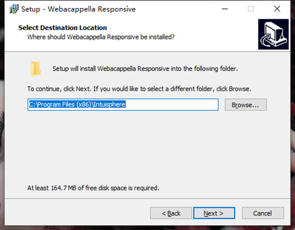 4、选择WebAcappella Grid安装位置,默认为C:\Program Files (x86)\Intuisphere。
