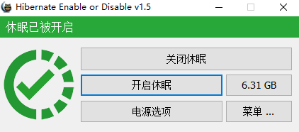 1、下载后,将“休眠启用或禁用”提取到您想要的位置,然后运行它,应用程序GUI将显示休眠状态,如果启用了休眠,您可以在“体积”按钮上看到您的休眠文件大小。