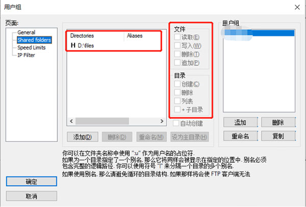 4、配置FTP远程登录用户