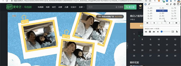 5、打开视频网站,例如爱奇艺,然后单击插件图标,可以看到0.25~16倍速的菜单框