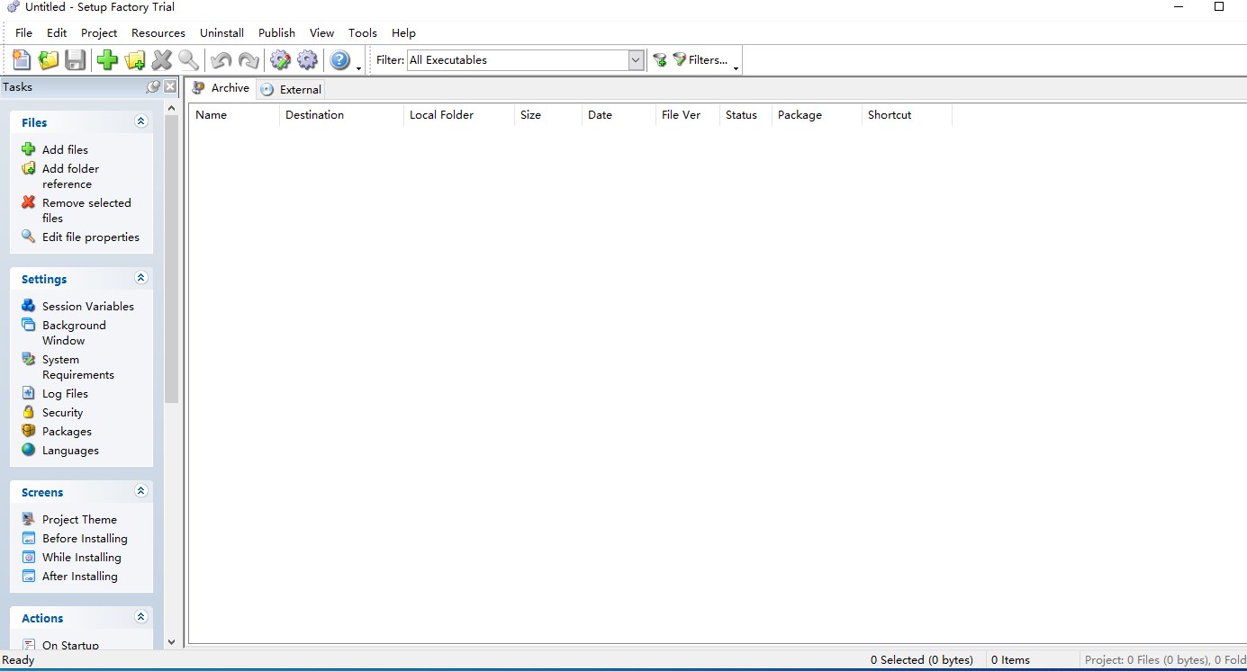 普通特性安装所有文件——把打包的文件和文件夹拖曳到工程窗口中,SetupFactory可以智能管理文件夹目录,自动查询版本信息,创建快捷方式图标,通过CRC-32校验来确保数据的完整性,整个过程都可以自定义或者覆盖。