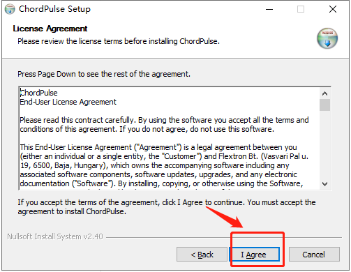 1、在本站下载解压,得到chordpulse安装文件;2、双击运行"chordpulse_2p6_setup.exe"程序,点击I agree同意安装协议;