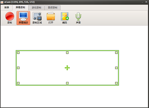 1、下载完成后打开ocam,打开后ocam会出现一个绿色的框框,这个框框内就是ocam默认的录屏区域。ocam的主界面会显示一些常用的按钮,如录像、屏幕捕获等;