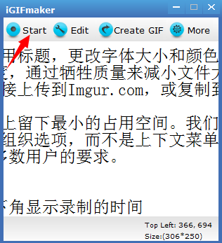 1、在屏幕上记录某个区域以创建动画GIF2、创建的GIF文件非常小