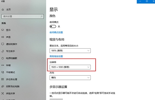 4、进入到Windows系统显示设置界面,选择系统推荐的分辨率即可,如下图所示: