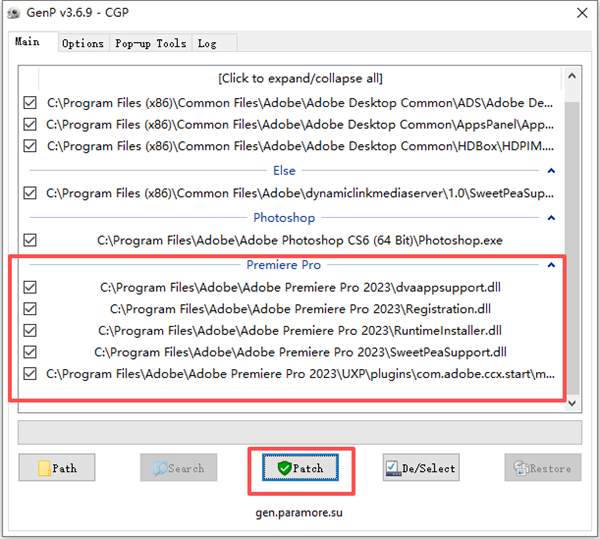 8、随后会提示您需要激活的Premiere Pro 2023版本,如图所示,然后点击Patch进行激活;
