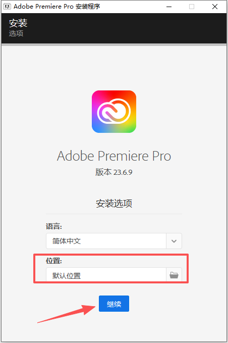 3、开始安装Adobe Premiere Pro 2023,你可以自由更改安装路径,然后点击继续;