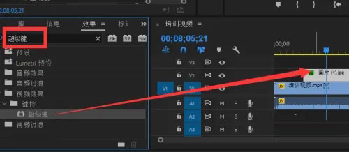 3、搜索“超级键”效果,并拖动到需要的素材上。