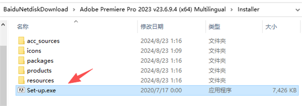 1、下载解压后,进入Adobe Premiere Pro 2023 v23.6.9.4 (x64) Multilingual文件夹当中;
