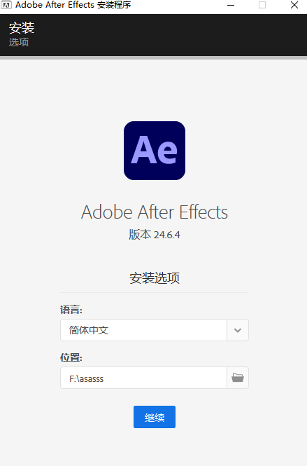 1、首先我们解压获得文件,安装AE2024应用程序(安装路径不能带中文符号);