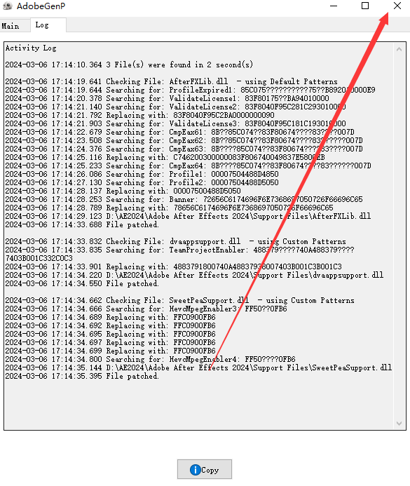 6、等待片刻出现如下图点击X;现在我们进入AE2024即可免费使用!