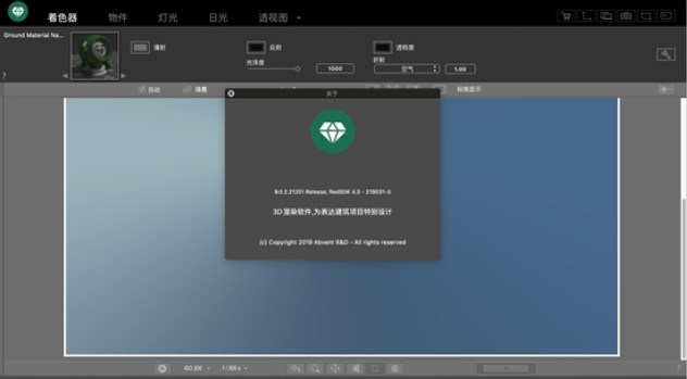 Artlantis提供两种照明方式:自动光线调节和ISO /快门。通过选择自动光线调整设置,场景中使用的灯光和霓虹灯功率会自动调整为适合天空和太阳照射。