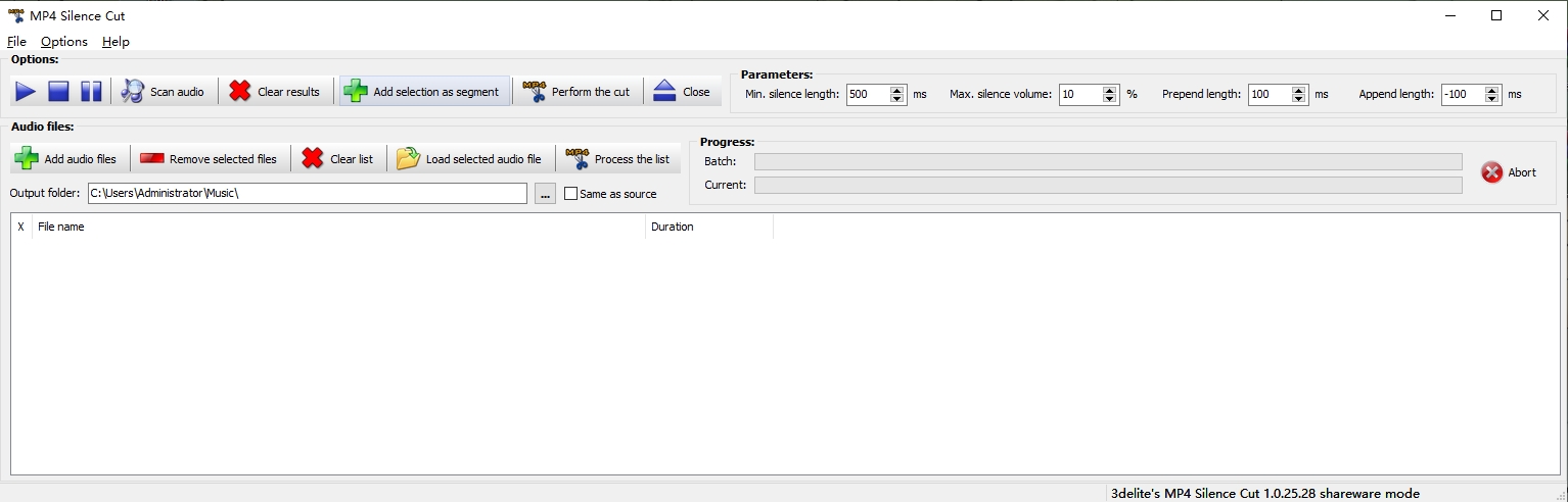 MP4 Silence Cut官方版是一款功能强大的 MP4 音频和视频文件分割器,它可以将一个完整的MP4视频分割成多个视频,还可以同时处理多个视频文件,当然你也可以使用其自带的Scan Audio搜索磁盘里面的MP4文件,添加文件后点击处理可以开始分割MP4视频文件。
