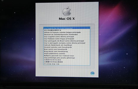 3、在进入安装的过程中直接重启很有可能是因为需要破解内核,比如在AMD或单核心Intel处理器上安装Mac OS X,就可能导致这情况。如果遇到了这种情况,可以直接找破解后的mach_kernel文件,替换安装分区根目录中的同名文件即可。一步一步的安装Mac OS X雪豹操作系统,如果在没有问题或者问题已经解决了之后,进入Mac OS X安装,数分钟之后我们将迎来正式安装的首个屏幕——选择安装语言版本。