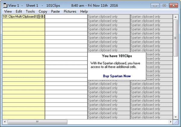 1、剪辑101是所有多剪贴板程序中*简单的。只需将其运行*小化,并捕获从其他程序剪切或复制的所有内容。它保持最后25.当你想粘贴一个回来,所有你需要做的是恢复它,并点击你想要的剪辑。如果您喜欢从键盘完全工作,您可以选择功能键进行还原,然后通过键入其旁边显示的字母粘贴任何剪辑。当您将鼠标移动到剪辑上时,您可以在查看器中看到它们。如果剪辑是文本,您会看到几行,如果是图形,则会看到一个缩略图。