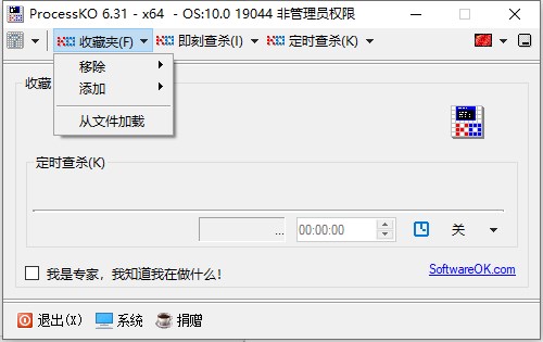 ProcessKO(进程查杀工具)最强大的功能其实是批量查杀、定时查杀,最是系统远远做不到的。因为一般一个程序可能带出一系列的进程,一个个结束也太慢了。还有一些系统级别高的进程,这款工具也是能查杀的。