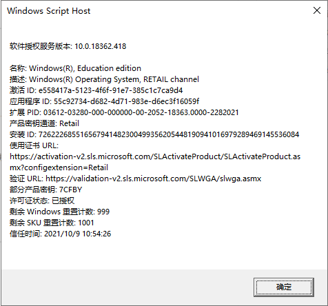 slmgr.vbs -xpr 显示:是否永久激活