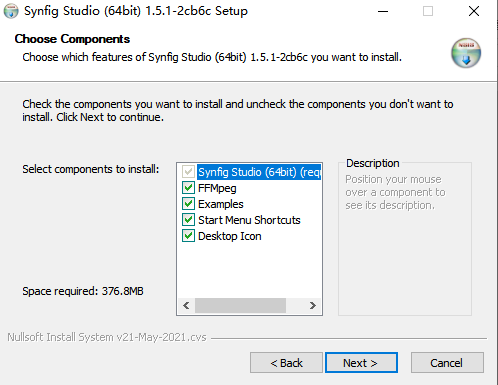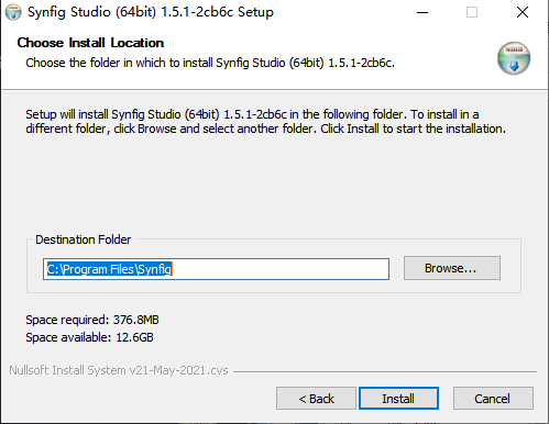 安装向导默认设置的软件默认安装路径为C:\Program Files (x86)\Synfig