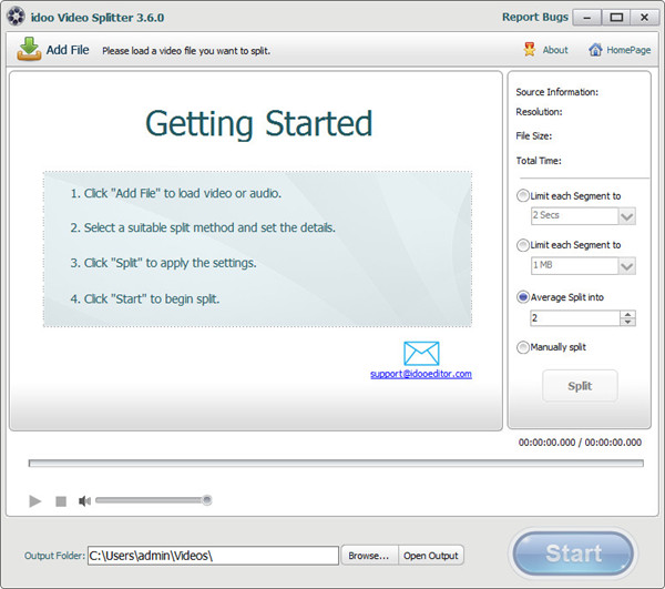 它显示源视频的信息,如分辨率、文件大小和持续时间,以帮助您更容易地拆分视频。