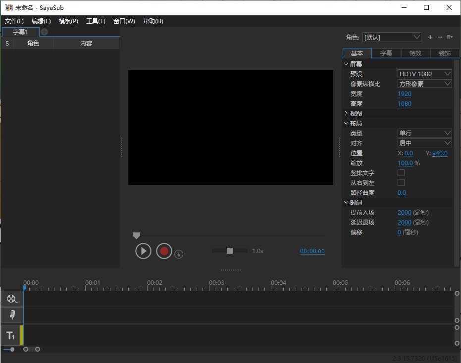 4、编辑字幕时可以设置详细的字幕属性(布局、字体、显示、是境等)和模板特效(走字特效、指示灯设置等)。