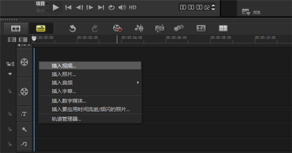2.1、在视频轨上单击鼠标右键,插入照片就选择“插入照片”,视频就选择“插入视频”;