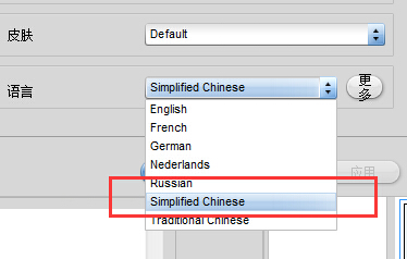 家在安装后启动程序,点击右边最后一个蓝色齿轮按钮,设定语言(Language)时选择Chinese Simplified即可。