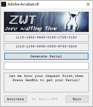 12、将激活码复制到注册机中,点击“Activate”按钮生成激活码,并将其复制到Acrobat 8中