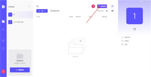 1、注册成功后,登陆工作界面。点击左上角的“+”号,可以新建一个项目群组。创建的时候可以进行相应的权限设置,如成员是否可以下载项目文件、是否可以创建审阅链接等。