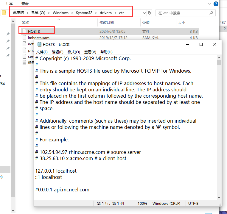 6、打开C盘的\Windows\System32\drivers\etc,找到hosts文件,鼠标右键选择打开方式-记事本。