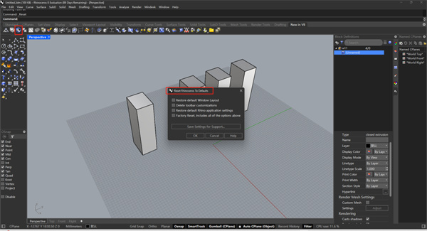 这个Reset Rhino的命令也很好用啊,可以重置界面,单独重置工具栏等。