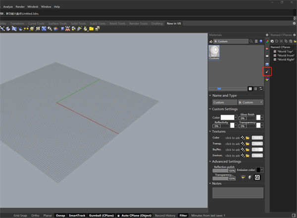 常用的材质面板也改了,就像是在用MAC版的Rhino一样,众所周知,Mac版的Rhino就贼难用。