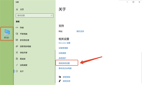 4、在【此电脑】右键属性,点击高级系统设置。
