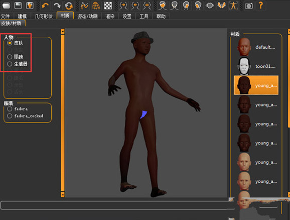 在这里,用户可以对人物的颜色及人物的材质进行设置,例如皮肤颜色、眼睛颜色、牙齿的材质等等。
