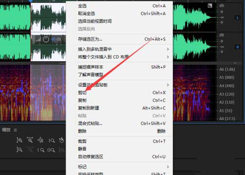 4、然后正在分析音频之后在编辑音频工作区中选区要剪切的音频片段;