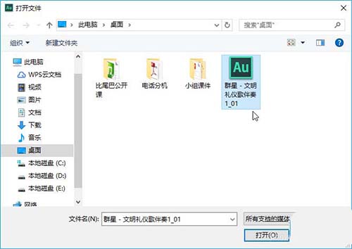 3、打开了对话框中选择双击”需要剪切的音频“;