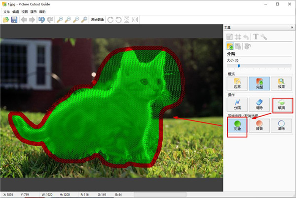 单击对象内部以填充它。填充只对分离加速是必要的,特别是在大照片上。