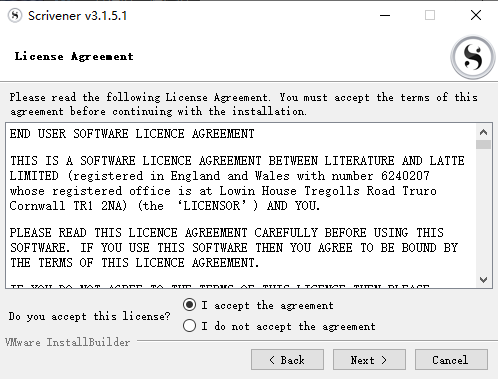2、双击Scrivener-installer.exe运行,选择我同意软件安装协议。