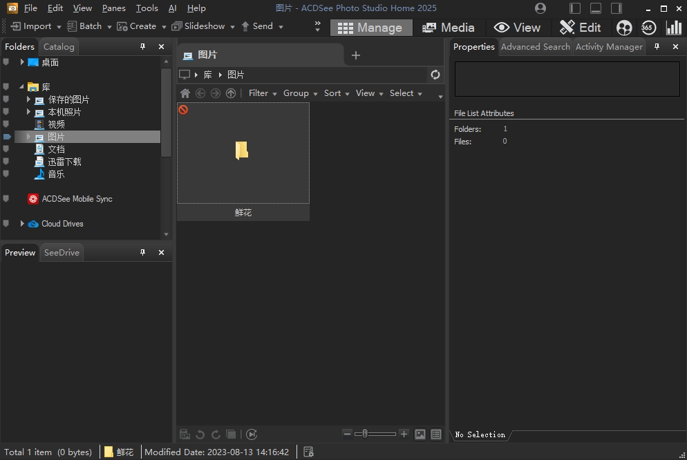 2、媒体模式,使用 ACDSee 的新数据库驱动视图以闪电般的速度浏览和过滤,用于在管理模式和目录文件夹中访问以前 浏览的文件夹。