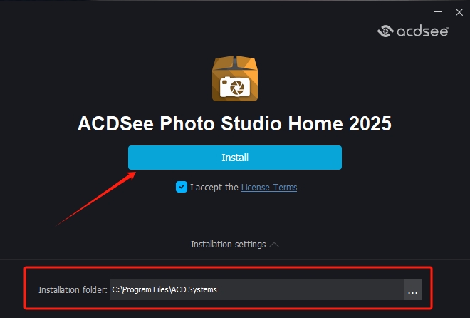 1、以管理员身份运行acdsee-photo-studio-home-2025-win-en.exe程序文件。