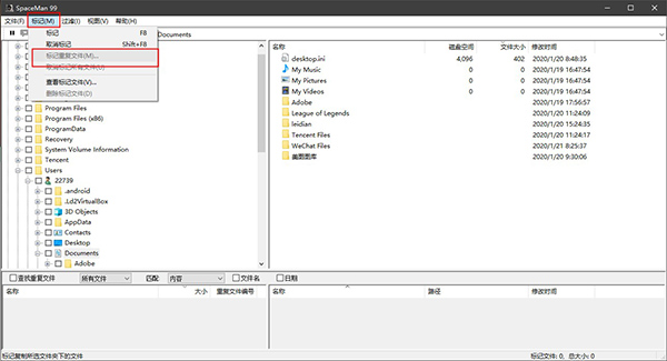 10、我们点击菜单栏上的【标记】按钮,我们在呼出的标记选项下选择【标记重复文件】。