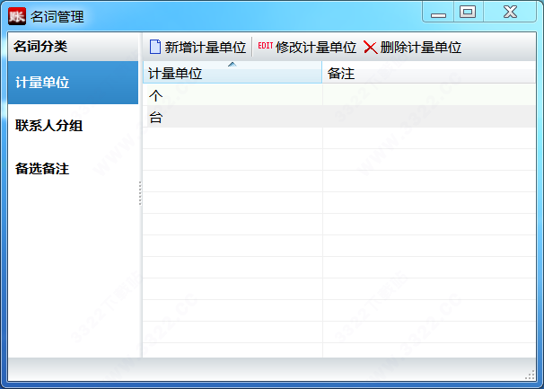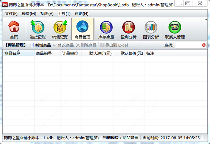 对所有商品的名称、编号、计量单位、默认进货单价、默认销售单价等属性进行添加、修改、删除、导出等;