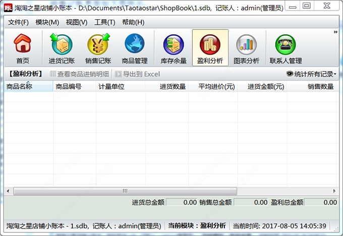 对所有商品在销售金额、进货金额以及盈利金额进行统计;