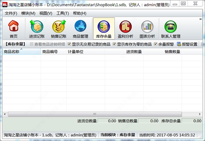 对所有商品的进货数量、销售数量以及库存量进行统计。可以设置余量报警;