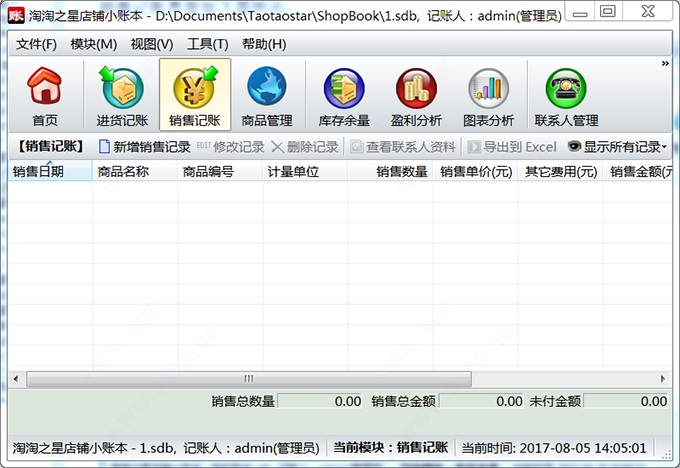 对销售商品的数量、金额等账务进行添加、修改、删除、查询、导出等;