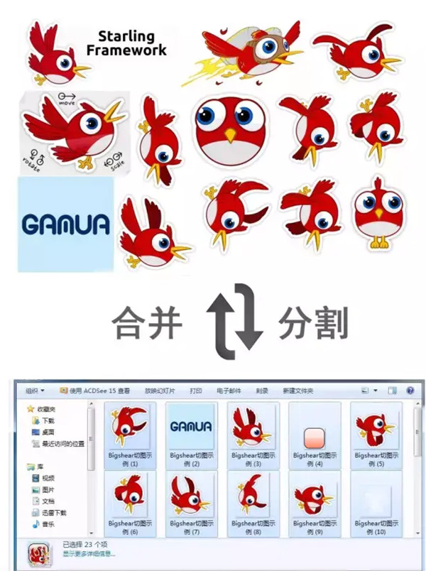 1、分图合图功能他可以将游戏PNG大图切割为小图,并按开发引擎标准自动生成配置文件